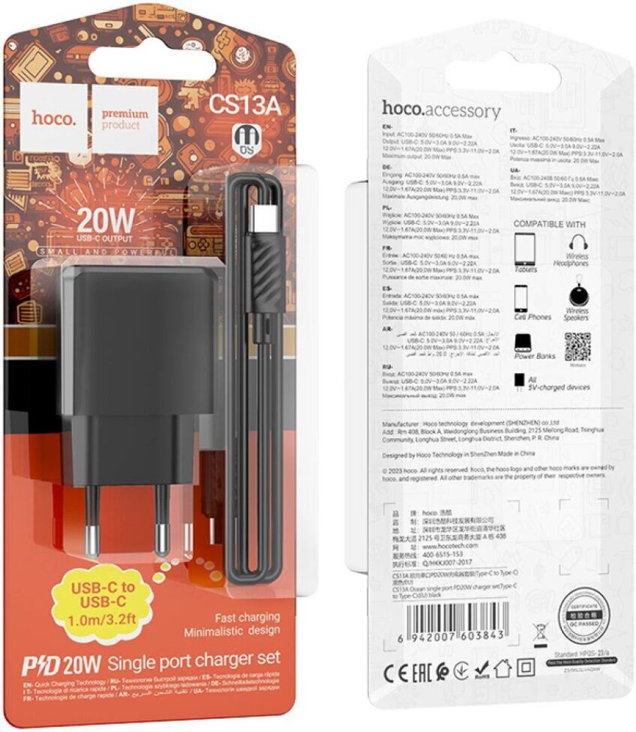 Сетевое зарядное устройство Hoco CS13A обладает небольшими размерами, что делает его незаменимым устройством в путешествиях. Защита от перегрузки и короткого замыкания помогает обезопасить заряжаемое устройство в случае возникновения каких-либо проблем при зарядке. Заряжайте абсолютно любое устройство с помощью надежного дата-кабеля в комплекте.