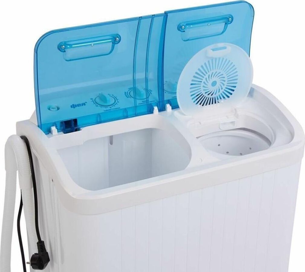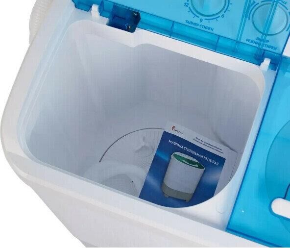 Стиральная машина, малогабаритная, активаторного типа. Максимальный объ м закгрузки до 2кг. Управление механическое. Режим стирки реверсивный, таймер временем стирки до 8 мин. Количество режимов стирки 1. Без отжима.