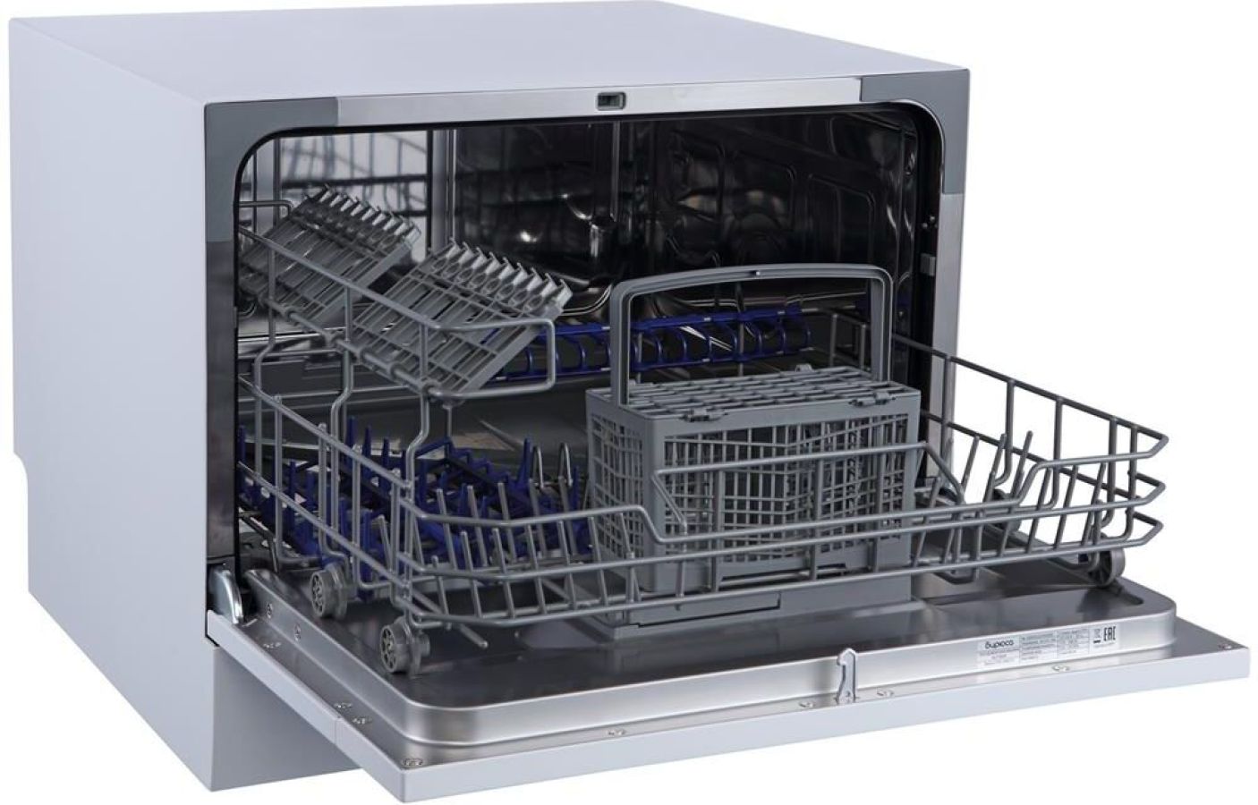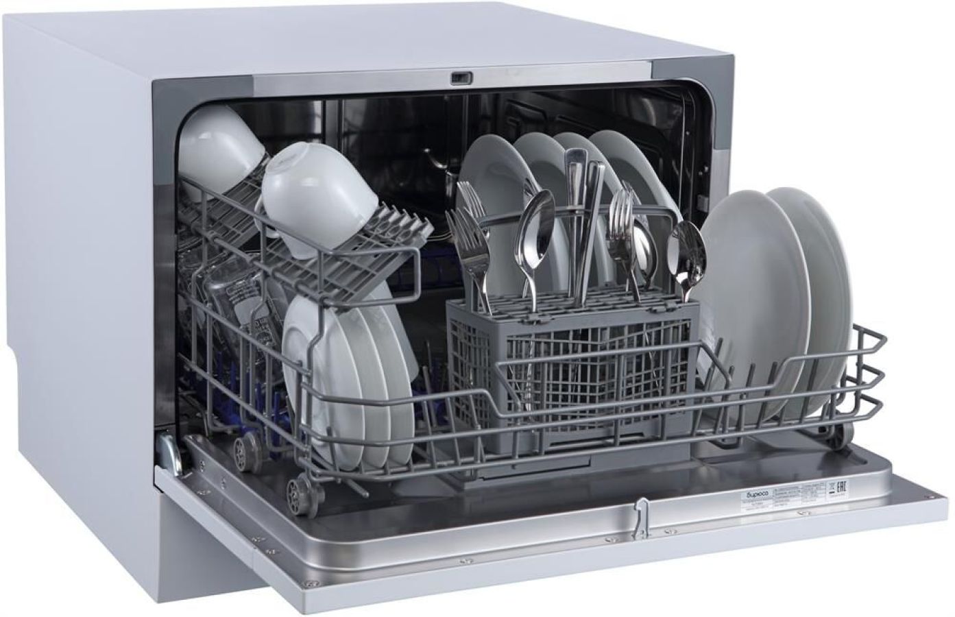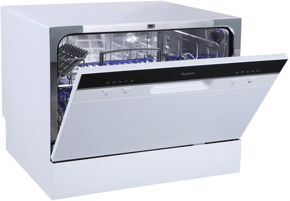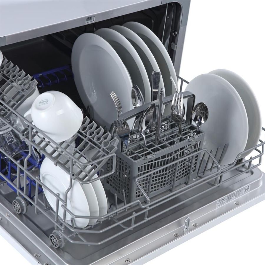 Компактная настольная посудомоечная машина рассчитана на 6 комплектов; Габариты ВхШхГ: 43,8x55x50 см; Отсрочка запуска: 2/4/8ч; LED-индикация; Класс: А+; 5 программ: интенсив, ECO, обычная, стекло, быстрая; Расход воды за цикл: 6л; Энергопотребление за цикл: 0,23 кВт*ч