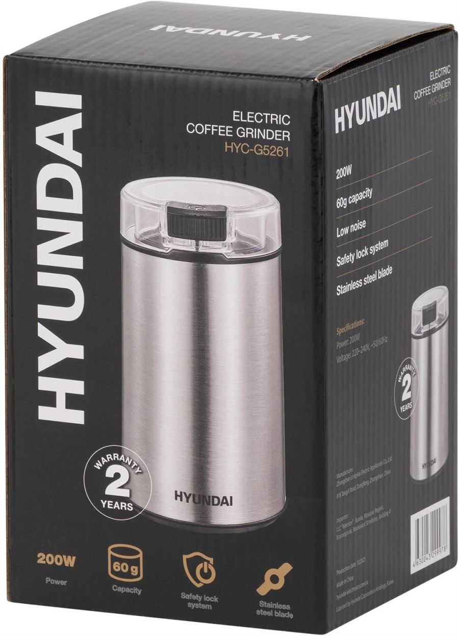 Мощность 200Вт Вместимость 60г. Корпус – нержавеющая сталь Нож из нержавеющей стали Управление нажатием на кнопку Отсек для хранения шнура.