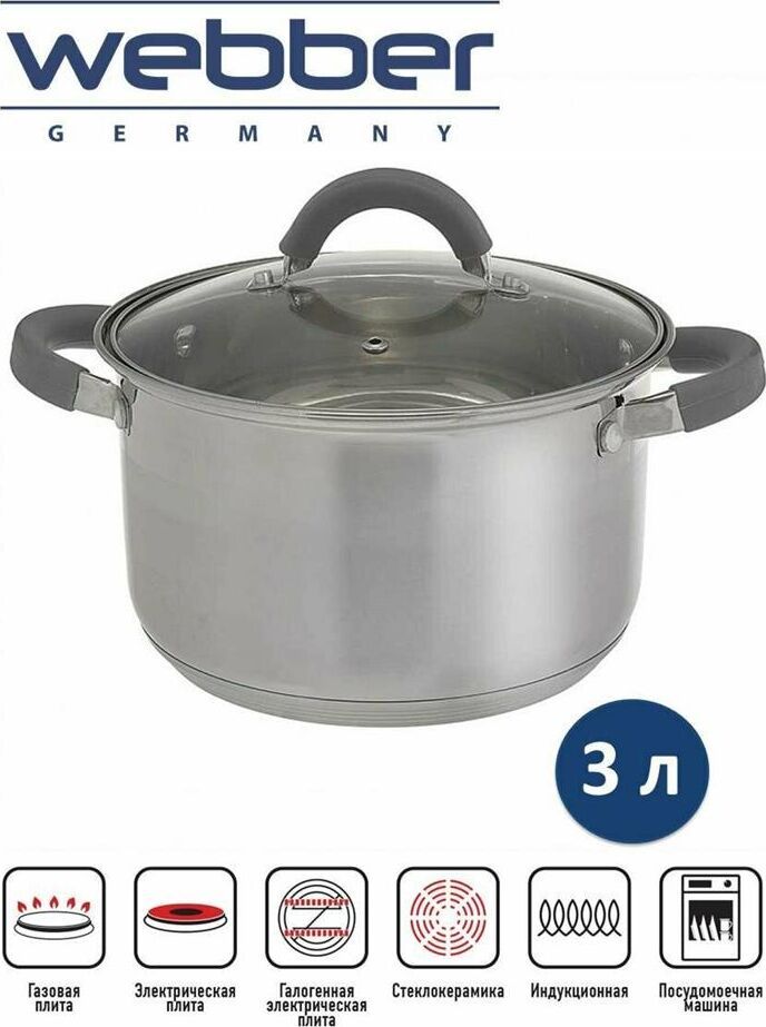 Параметры Объем 3 л Диаметр 18 см Глубина 11,5 см Толщина стенок 0,5 мм Описание Кастрюля из высококачественной нержавеющей стали со стеклянной крышкой Специальная форма, исключающая скопление остатков пищи и жира Термосберегающее дно: пятислойное капсульное индукционное дно с повышенной термоотдачей Быстрый нагрев пищи, длительное удержание тепла Минимальные потери минеральных веществ, витаминов и вкусовых качеств Может быть использована на всех типах кухонных плит, включая индукционные Подходит для мытья в посудомоечной машине