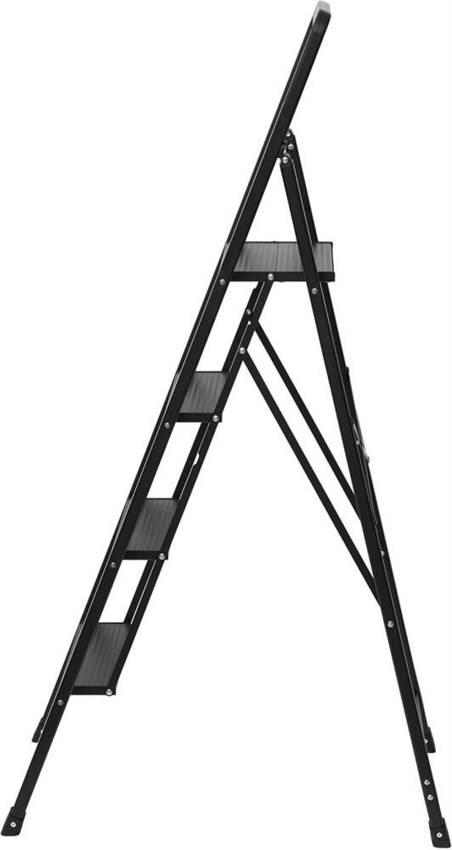 Надежная и удобная алюминиевая стремянка Арья – идеальное решение для домашних работ на небольшой высоте. Четырехступенчатая конструкция обеспечивает безопасный и комфортный доступ к труднодоступным местам. Стремянка выполнена из прочного утолщенного алюминиевого профиля, а широкие ступени с ребристой поверхностью гарантируют устойчивость и безопасность. Дополнительные накладки из нескользящего материала на ножках обеспечивают надежное сцепление с поверхностью. Стильный дизайн гармонично впишется в любой интерьер. Кол-во ступеней: 4 Цвет: черный Размер в разложенном виде: 41,5 х 70,8 х 127 см Размер в сложенном виде: 41,5 х 5,1 х 136 см Максимальная нагрузка: 150 кг
