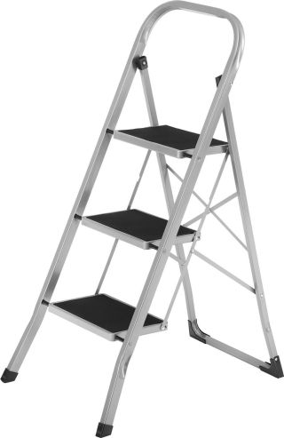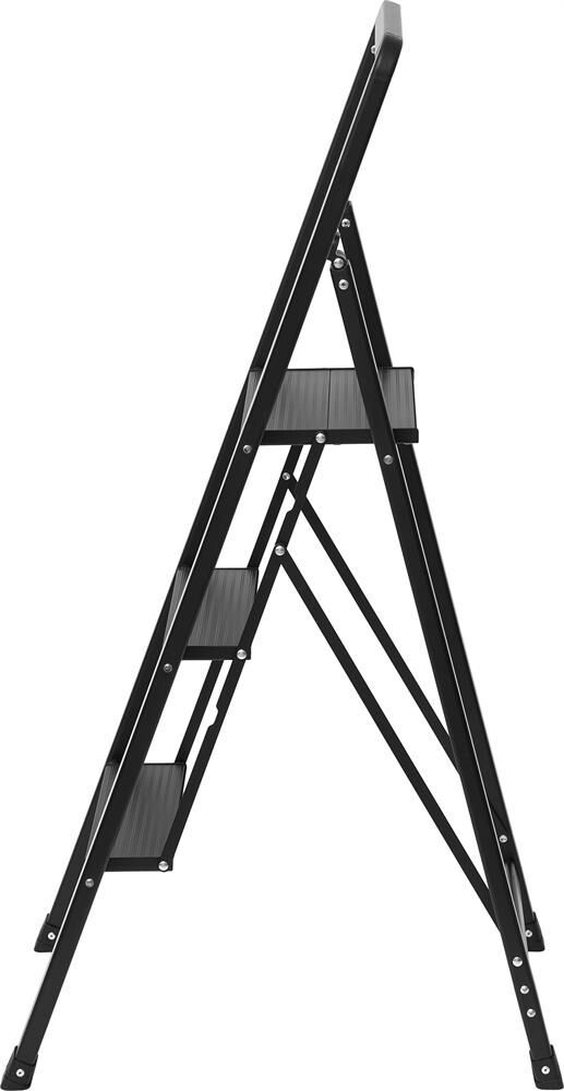 Надежная и удобная алюминиевая стремянка Арья – идеальное решение для домашних работ на небольшой высоте. Трехступенчатая конструкция обеспечивает безопасный и комфортный доступ к труднодоступным местам. Стремянка выполнена из прочного утолщенного алюминиевого профиля, а широкие ступени с ребристой поверхностью гарантируют устойчивость и безопасность. Дополнительные накладки из нескользящего материала на ножках обеспечивают надежное сцепление с поверхностью. Стильный дизайн гармонично впишется в любой интерьер. Кол-во ступеней: 3 Цвет: черный Размер в разложенном виде: 41,5 х 57,5 х 105,1 см Размер в сложенном виде: 41,5 х 5,1 х 112,5 см Максимальная нагрузка: 150 кг