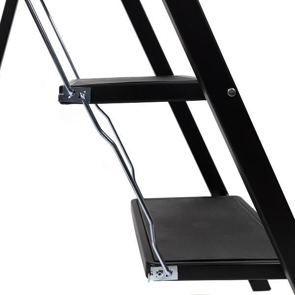Стальная стремянка SHAN предназначена для любых хозяйственных задач. Эстетика, качество и функциональность стремянки позволяют использовать ее в интерьере. Трендовый черный цвет легко интегрируется в любой стиль жилых и хозяйственных помещений. Суперкомпактная, она разместится зазоре от 5 см. Ее опорная конструкция оснащена дополнительными стяжками для большей устойчивости и надежности. Выдерживает вес 150 кг. Удобная и простая система сложения и разложения. Для безопасности от непредвиденного сложения имеется замок. Ударопрочное антикоррозионное порошковое покрытие позволяет сохранять первоначальный вид изделия в процессе эксплуатации. Предусмотрен поручень с функцией ограждения для страховки от падения. Две ступени с не... Далее Параметры: Цвет: черный Состав: сталь, пластик Ширина упаковки: 51,5 Высота упаковки: 78 Глубина упаковки: 46,5