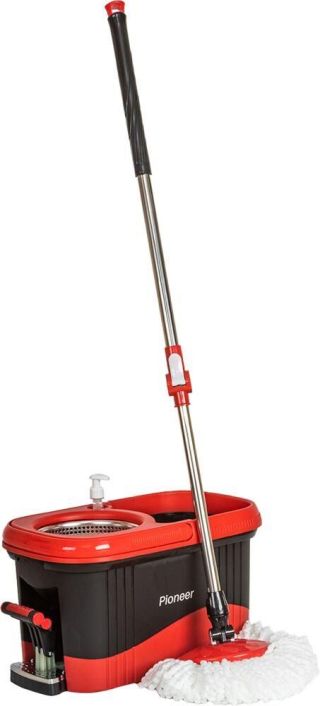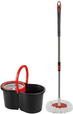 Швабра Торнадо с пластиковой центрифугой Материал: пластмасса, металл, микрофибра (100 % полиэстер) Объем ведра 10 л Длина швабры 85-115см Отжимной механизм Система отжима : вращение 360 ° Насадки из микрофифры для сухой и влажной уборки Для всех типов напольных покрытий. Режим отжима: ручной. Легкая смена насадки. В комплекте: - швабра - ведро для отжима и полоскания - 2 насадки Сменная насадка артикул 107197