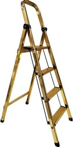 Стремянка 4 х ст бытовая алюминиевая с анодированым покрытием золотистого цвета высота рабочей площадки 89 см вес 3,5 кг Максимальная нагрузка 150 кг. Рабочая высота 309 см.
