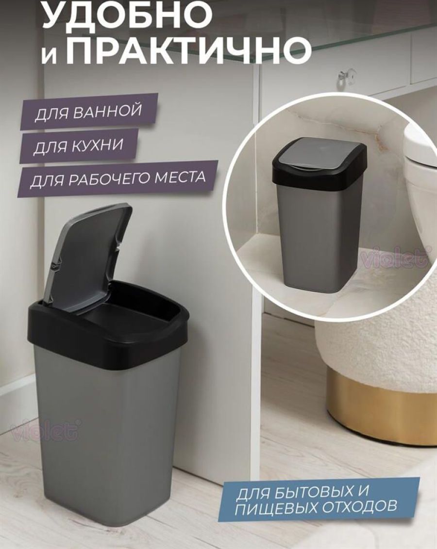 Комплектация: мусорное ведро - 1 шт, крышка - 1 шт