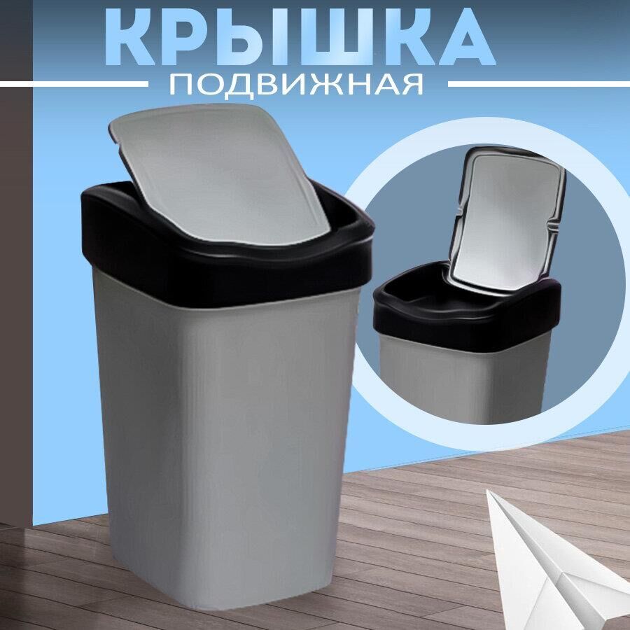 Ведро для мусора с подвижной крышкой "Tandem" 10л (сер.металлик/черный)