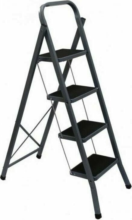 стальная 4 х ступ стремянка для бытовых ремонтных строительно монтажных работ серии "Jet Black"с порошковым покрытием от коррозии .Ступени с протвоскользящими ковриками. Рабочая высота 291 см. Высота ступени 91 см Размер ступеней 30х20 см Вес 6,69 кг и цвет угольно-черный.Максимальная нагрузка 120кг.
