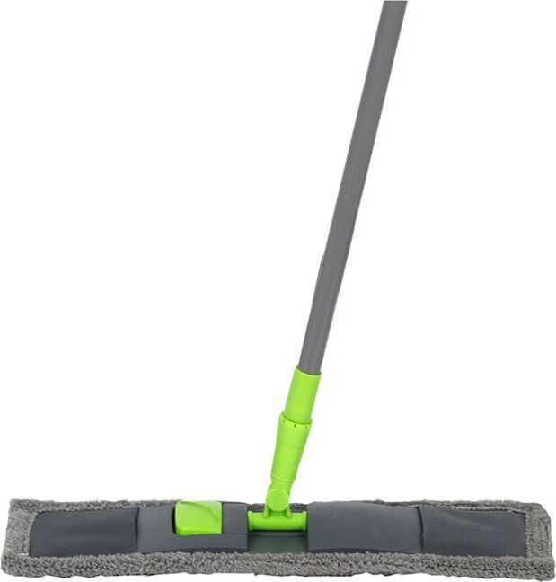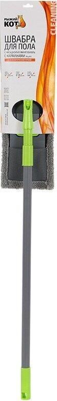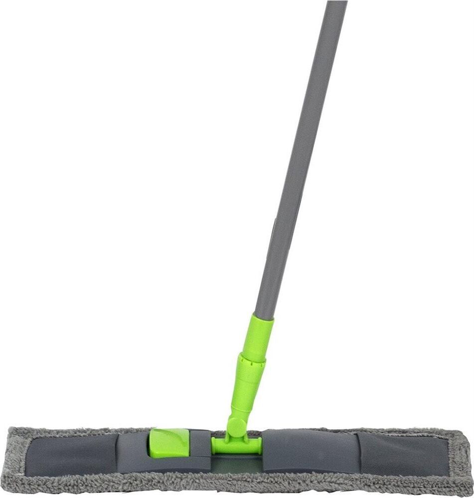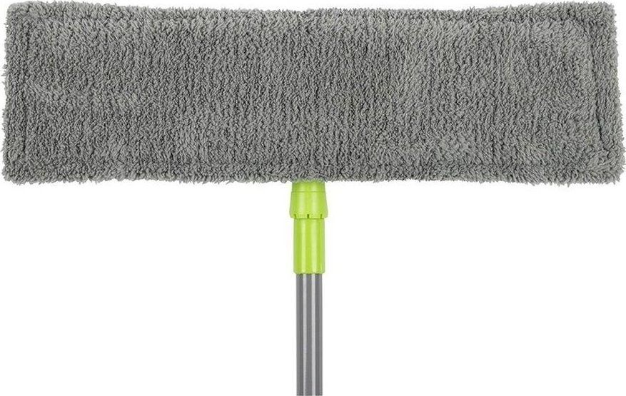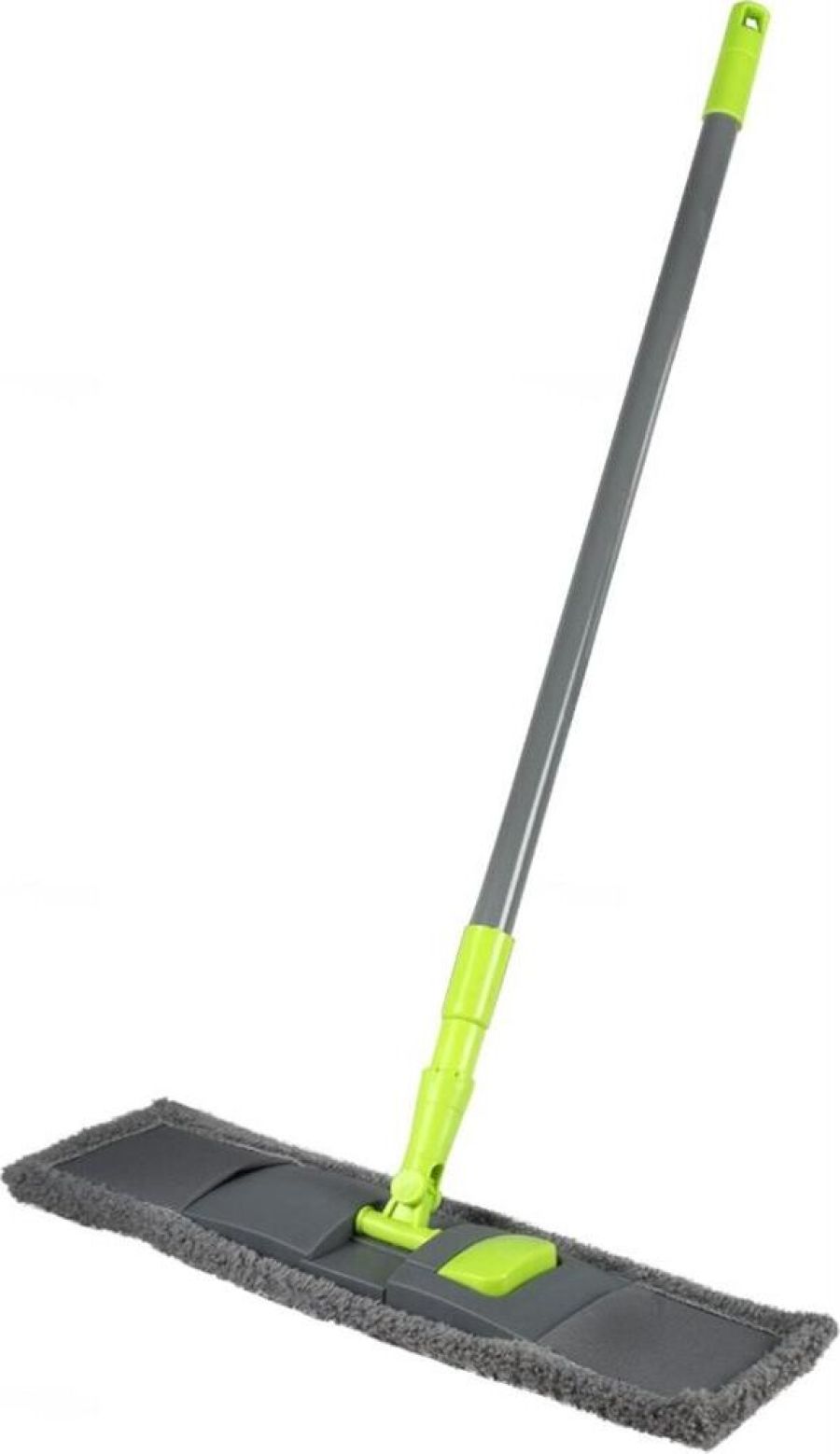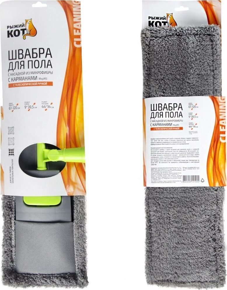 Швабра для пола с насадкой из микрофибры. С карманами Микрофибра притягивает и удерживает частицы пыли за счет безупречных электростатических свойств материала. Может быть использована для сухой и влажной уборки для различных материалов поверхности. Размер рамки: 9*39,5 см Размер насадки: 14*44 см Длина: 67-120 см Материалы: металл, пластик, микрофибра (80% полиэстер, 20% полиамид)
