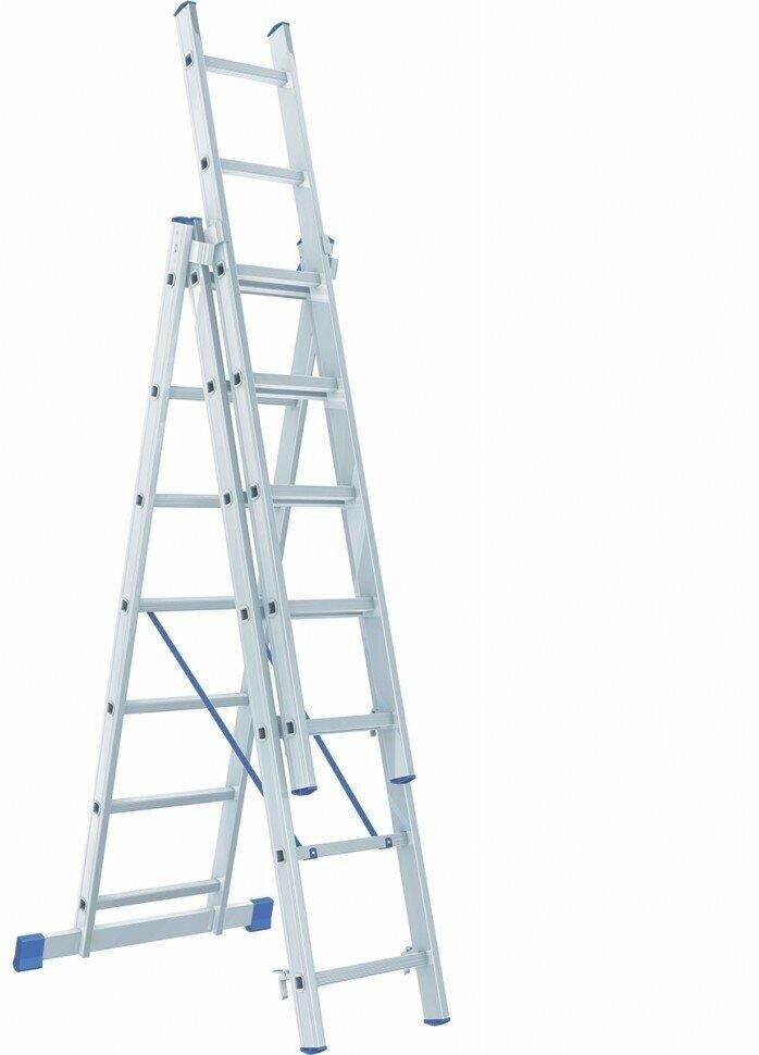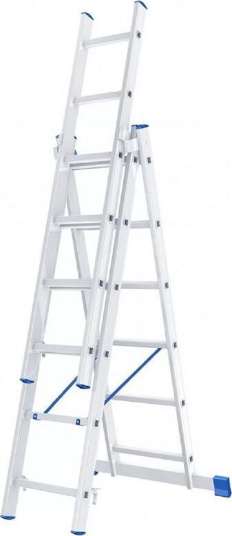 Алюминиевая трехсекционная лестница Pоссия 3x7 ступеней СИБРТЕХ 97817 используется при покраске фасада дома, монтировании электроосветительных приборов, работе в саду и т.д. Имеет четыре различных положения и подходит для выполнения работ на высоте до 3.6 м. Защиту от скольжения на рабочих поверхностях обеспечивают заглушки и широкая траверса. Технические характеристики Россия 97817 Тип трехсекционная Материал алюминий Рабочая высота, м 3,6 Max рабочая нагрузка, кг 150 Общая длина, м 3,07 Min длина, м 1,98 Max длина, м 3,07 Ширина лестницы, мм 445 Количество ступеней, шт 3х7 Размер в сложенном состоянии, см 198х44.5х13.5 Регулировка опоры угловой траверсы нет min длина в сложенном состоянии, м 1.98 Вес, кг 9 Габариты, мм 1980х445х135 Толщина профиля 0.7