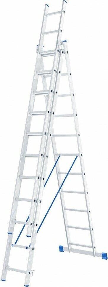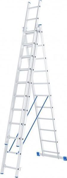 Алюминиевая трехсекционная лестница применяется для высотных работ, как покраска фасада дома, монтирование электроосветительных приборов, работа в саду и др. Трансформируется в четыре различные формы и подходит для выполнения работ на высоте до 5.55 м. Защиту от скольжения на рабочих поверхностях обеспечивают заглушки и широкая траверса. Тип трехсекционная Материал алюминий Рабочая высота, м 5,55 Max рабочая нагрузка, кг 150 Общая длина, м 5,04 Min длина, м 3,12 Max длина, м 5,04 Ширина лестницы, мм 445 Количество ступеней, шт 3х11 Размер в сложенном состоянии, см 312х44.5х17.5 Регулировка опоры угловой траверсы нет min длина в сложенном состоянии, м 3.12 Вес, кг 13,9 Габариты, мм 3120х445х175