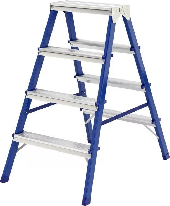 Стремянка двусторонняя 4ст., стальная, Россия 97934 Стальная двусторонняя стремянка служит для организации работ на небольшой высоте. Сфера использование широка и многогранна. Подходит для дома, сада, гаража, а так же коммунальной и строительной деятельности. При изготовлении использовался стальной профиль с высококачественным эмалевым покрытием. Это гарантирует изделию коррозионную стойкость и прочность. Изделие оснащено пластиковыми наконечниками, которые исключают скольжения по поверхности и не повреждают покрытие пола. Рабочая высота, м 2,45 Высота площадки, м 0,87 Размер в сложенном состоянии, см 94х46.5х16 Количество ступеней, шт 2х4 Материал сталь Общая длина, м 0,94 Max рабочая нагрузка, кг 150 Кол-во ступеней по одной стороне, шт 4 min длина в сложенном состоянии, м 0.94 Широкие ступени да Телескопическая/выдвижная нет Ширина ступеней, мм 80