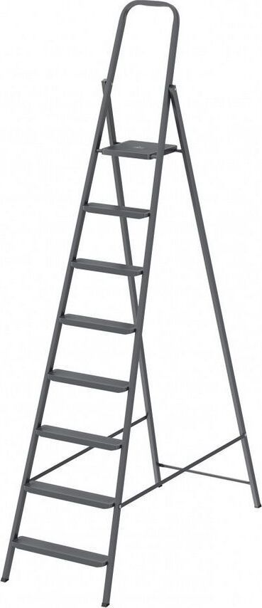 СИБРТЕХ Стремянка 8 ступеней, компактная, стальная Россия 97948 Тип стремянка Материал сталь Количество ступеней 8 Рабочая высота 3.1 м Высота площадки 1790 мм Длина 2520 мм Максимальная нагрузка 150 кг Габариты в сложенном состоянии 2520 х 550 х 90 мм Тип скидки Россия Группа Лестницы Параметры упаковки Длина в упаковке 2520 мм Ширина в упаковке 550 мм Высота в упаковке 87 мм Вес 9.45 кг Используется в быту: дом, сад, гараж, а так же коммунальной и строительной деятельности. Прочная стальная рама прямоугольного сечения. Защитное покрытие стального профиля высококачественной эмалью - цвет антрацит. Устойчивая конструкция и надежная фиксация в рабочем положении. Высокая дуга безопасности, стальные ступени и рабочая площадка. Широкие профилированные ступени для длительной работы на высоте с противоскользящим рифлением. Прочная страховочная лента для безопасной работы на большой высоте. Пластиковые рифленые наконечники на основании опорных н