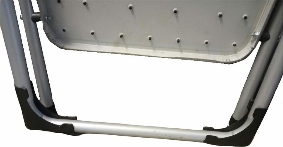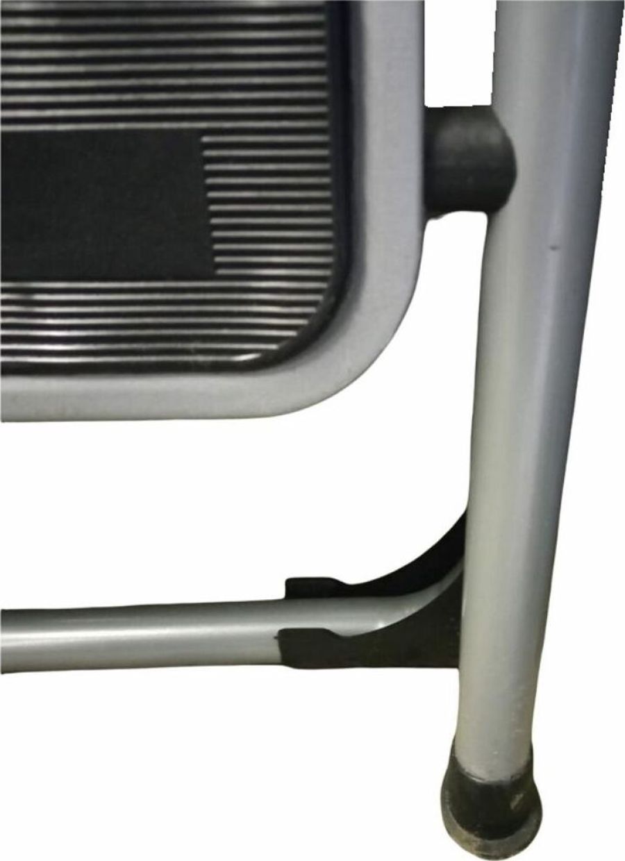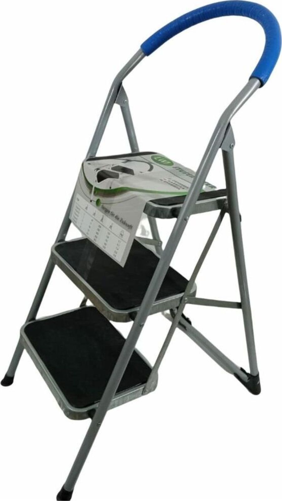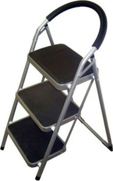 Стремянка оснащена удобной ВЫСОКОЙ ручкой С ПРОРЕЗИНЕНОЙ НАСАДКОЙ и резиновыми протвоскользящими насадками на ножках и ковриками на ступеньках высота ступеньки 71 см, вес 6,1кг