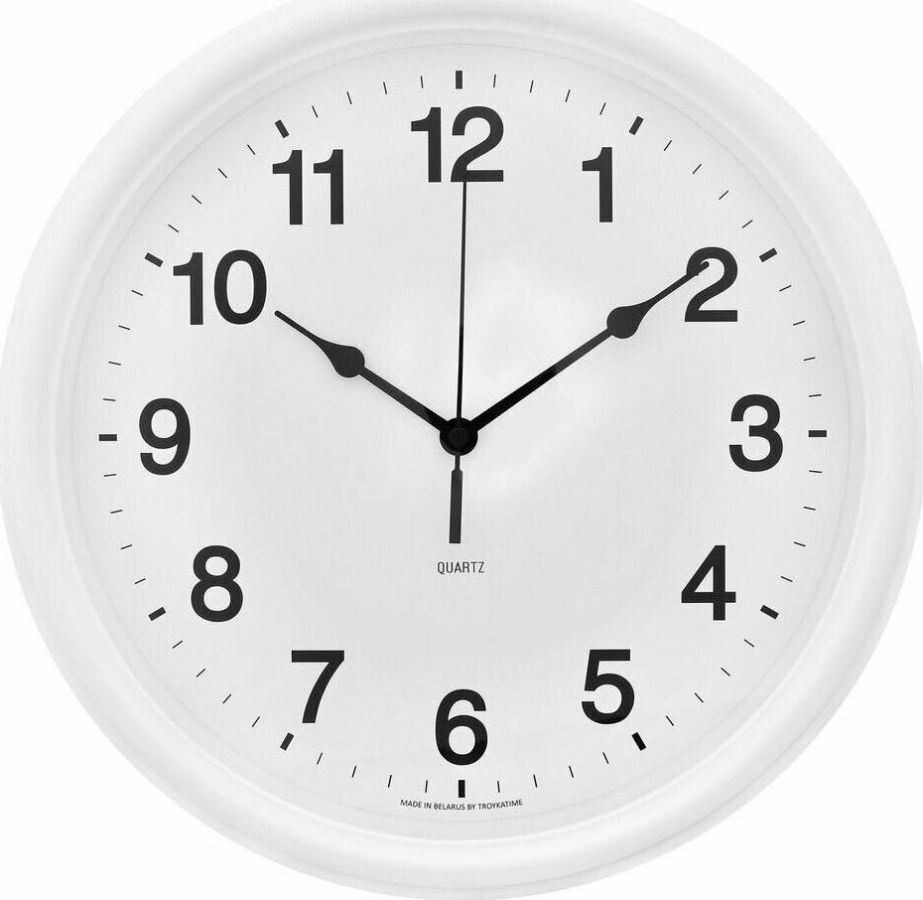Часы настенные пластиковые, модель 88881874, диаметр 310 мм, стекло минеральное, пластиковый обод, цвет-белый.
