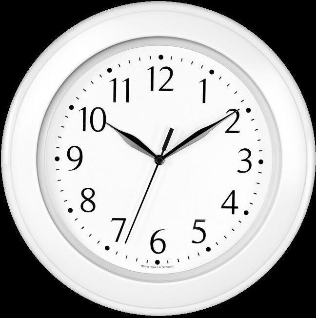 Часы настенные, модель 122211201, диаметр 300 мм, стекло пластик, пластиковый обод, цвет-прозрачный/белый.