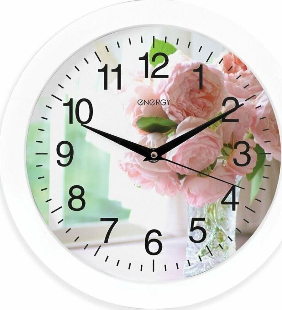 Часы настенные кварцевые ENERGY модель ЕС-96 цветы. Питание от 1 батарейки типа АА (в комплект не входят). Напряжение: 1 х АА 1.5В. Размер 27,5*3,8 см. Корпус: пластик. Плавный ход.