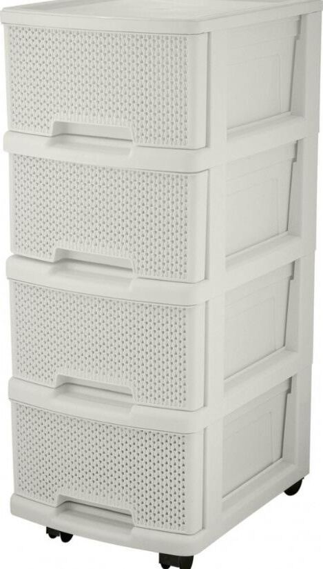 Размер 37х30х69см Универсальный Комод-компакт Ajur с ящиками, который идеально подойдет для организации хранения в гостиной, ванной комнате, прихожей или кухне. Компактный размер позволяет удобно разместить комод в небольших помещениях. По ширине идеально подходит под формат бумаги А4. Спереди остается еще ~3 см для захвата стопки бумаги, и чтобы вынуть ее. Колесики для удобного перемещения комода во время уборки или перепланирования пространства. Уютный декор Ajur - ажурная фактура вязания будет прекрасным дополнением к другим изделиям из коллекции. Самое ажурное и легкое плетение в стиле вязания из всех, представленных на рынке