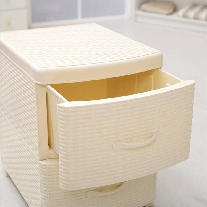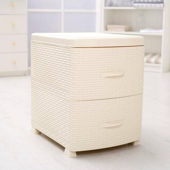 ЦВЕТ: слоновая кость. РАЗМЕР ИЗДЕЛИЯ: 480 x 380 x 520 мм. МАТЕРИАЛ: Полипропилен. Комод-тумба из пищевого пластика с двумя выдвижными ящиками предназначен для хранения вещей и продуктов питания и гармонично впишется в интерьер любой комнаты. Особенно гармонично будет смотреться в спальне, выполняя функцию прикроватной тумбочки.