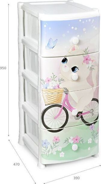 ЦВЕТ: белый. РАЗМЕР ИЗДЕЛИЯ: 470 x 390 x 950 мм. МАТЕРИАЛ: Полипропилен. омод из пищевого пластика с четырьмя выдвижными ящиками предназначен для хранения вещей и продуктов питания и гармонично впишется в интерьер любой комнаты. Легкий и вместительный комод поможет обеспечить порядок, избавит от разбросанных игрушек или одежды, убережет продукты от пыли и заветривания.