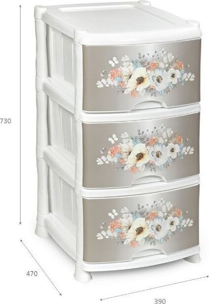 ЦВЕТ: белый. РАЗМЕР ИЗДЕЛИЯ: 470 x 390 x 730 мм. МАТЕРИАЛ: Полипропилен. Комод из пищевого пластика с тремя выдвижными ящиками предназначен для хранения вещей и продуктов питания и гармонично впишется в интерьер любой комнаты. Легкий и вместительный комод поможет обеспечить порядок, избавит от разбросанных игрушек или одежды, убережет продукты от пыли и заветривания.