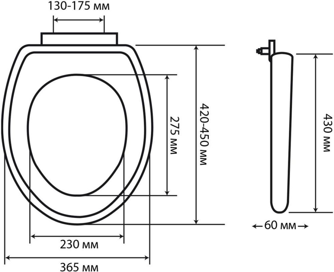 Сиденье для унитаза с крышкой, белого цвета классической O - образной формы. Сиденье изготовлено из высокопрочного АБС пластика - он обладает высокой износостойкостью, устойчив к агрессивным химическим веществам, экологичен и безопасен для здоровья. Специальные амортизаторы обеспечивают плавное и бесшумное закрытие крышки и сиденья унитаза, что предотвращает повреждение поверхности унитаза. Универсальный крепеж: мм, входящий в комплект сиденья, позволяют установить его на максимально большое количество моделей унитазов. Не нужно тратить время на дополнительные замеры. Крепления прочно и надежно фиксируют сиденье на унитазе и не расшатываются со временем. Габаритные размеры: длина 430 мм, ширина 365 мм. Вес - 1.6 кг, объем - 0.0126 м3.