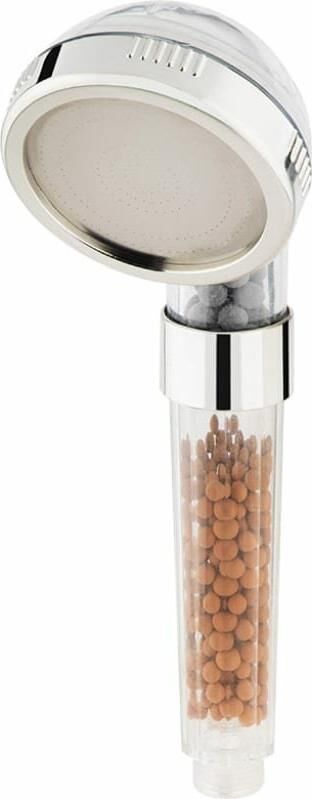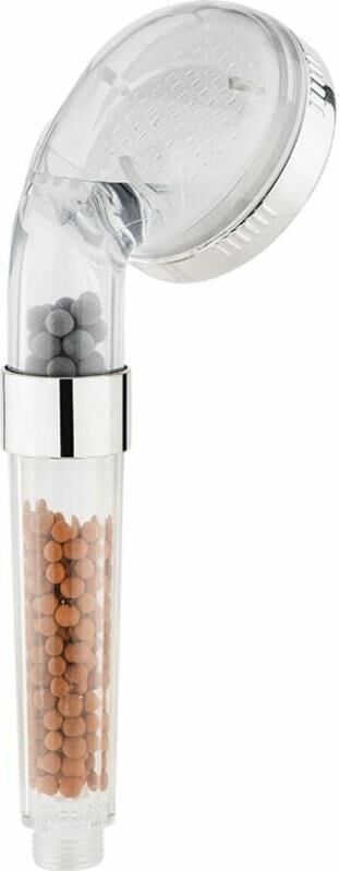 Лейка для душа Один режим Диаметр лейки: 80 мм Соединение: 1/2" Ультратонкое распыление воды , Массажный СПА эффект Экономия расхода воды В рукоятке содержатся гранулы турмалина, угля и германия. Они обладают полезными свойствами - смягчают, дехлорируют и ионизируют воду. Очищенная вода обогащена кислородом, положительно влияет на состояние кожи, волос, ногтей. Материал: хромированная пластмасса, термопластичная резина, турмалин, уголь, германий.