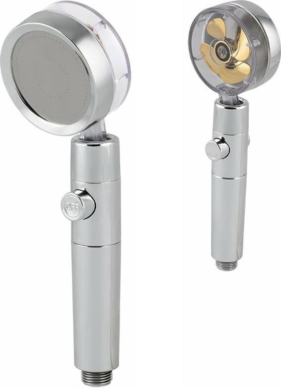1 режим Размер: 25.2*7,5 см В комплекте: фильтр Материал: хромированная АБС пластмасса, нержавеющая сталь, полипропилен Цвет серебро 4-х лопастной пропеллер закручивает воду и придает воде красивый узор. Спа эффект Вращающаяся головка, напор сохраняется в любом положении Установленный внутри пропеллер полностью смешивает горячую и холодную воду и под высоким давлением подает ее через множество специальных микро отверстий. Лейка оснащена кнопкой СТОП на рукоятке, с помощью нее Вы сможете моментально остановить напор воды. Лейка для душевой идет в комплекте с фильтром из ПП хлопка, который не только очищает воду от мелкого мусора, извести и бактерий, но и смягчает и дехлорирует воду, что оказывает благотворное влияние на состояние Вашей кожи. Рассеиватель можно полностью снять и использовать лейку как удобную насадку на душевой шланг.