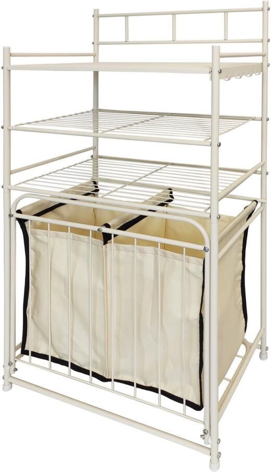 Двойная корзина для белья. Планка с крючками с одной стороны. Габариты 600х350х1240 мм. Размер упаковки 610х685х115 мм. Вес с упаковкой 6,8 кг. Высота между полками 190 мм