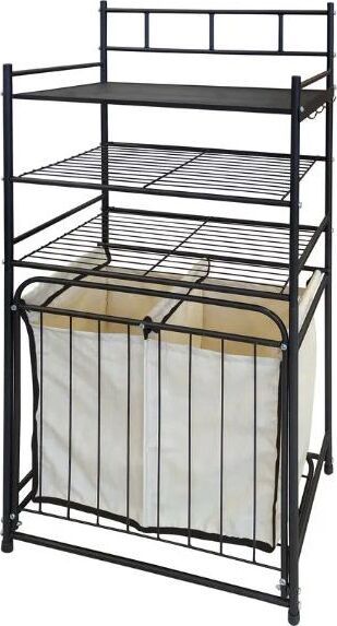 Двойная корзина для белья. Планка с крючками с одной стороны. Габариты 600х350х1240 мм. Размер упаковки 610х685х115 мм. Вес с упаковкой 6,8 кг. Высота между полками 190 мм