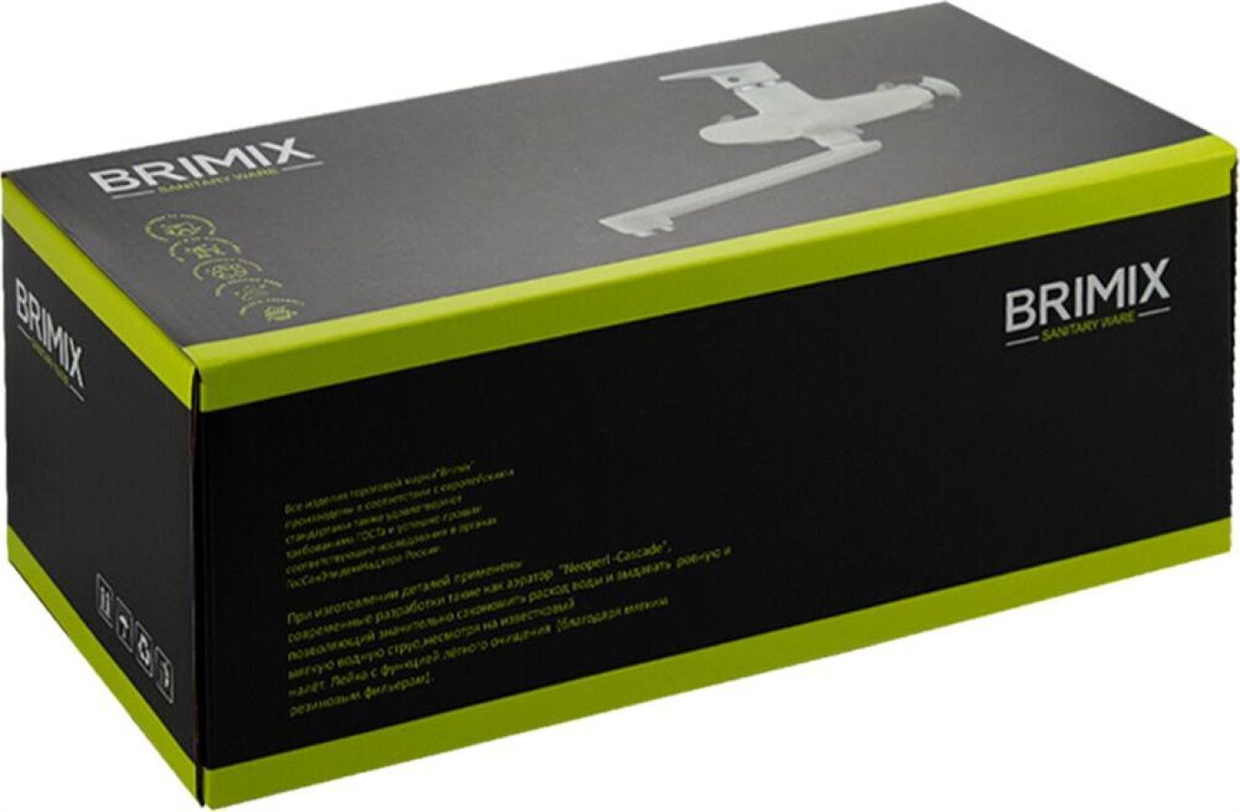 Комплектация: паспорт, корпус с изливом, дивертор, душевая лейка, шланг, кронштейн, комплект крепежа и прокладок