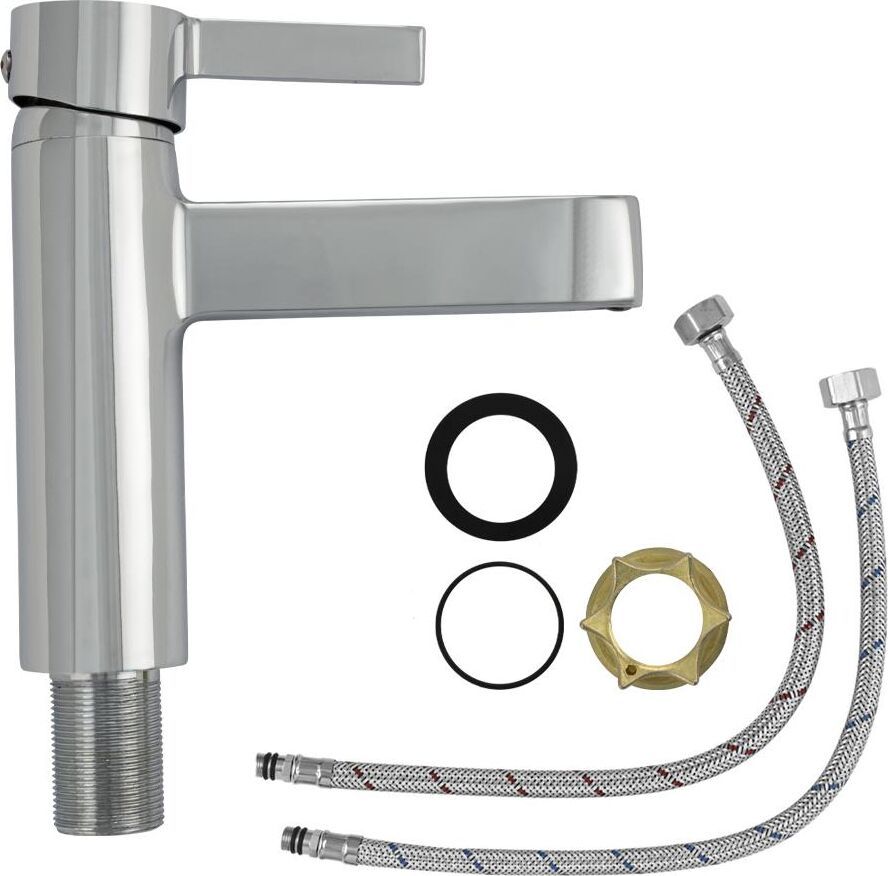 Смеситель для раковины, хромированный, с коротким изливом, литой корпус, ручка литая, шаровый. Материал изготовления — ЦАМ (цинк-алюминий-медь) + нержавеющая сталь. Крепление резьба - гайка, картридж d = 35 мм. Аэратор для экономии воды. Габаритные размеры: высота мм, длина мм, длина излива мм, диаметр посадочного седла мм, длина подводки 500 мм. Вес - кг, объём - м3. В комплекте паспорт, корпус, подводка 1/2, крепеж, набор прокладок.