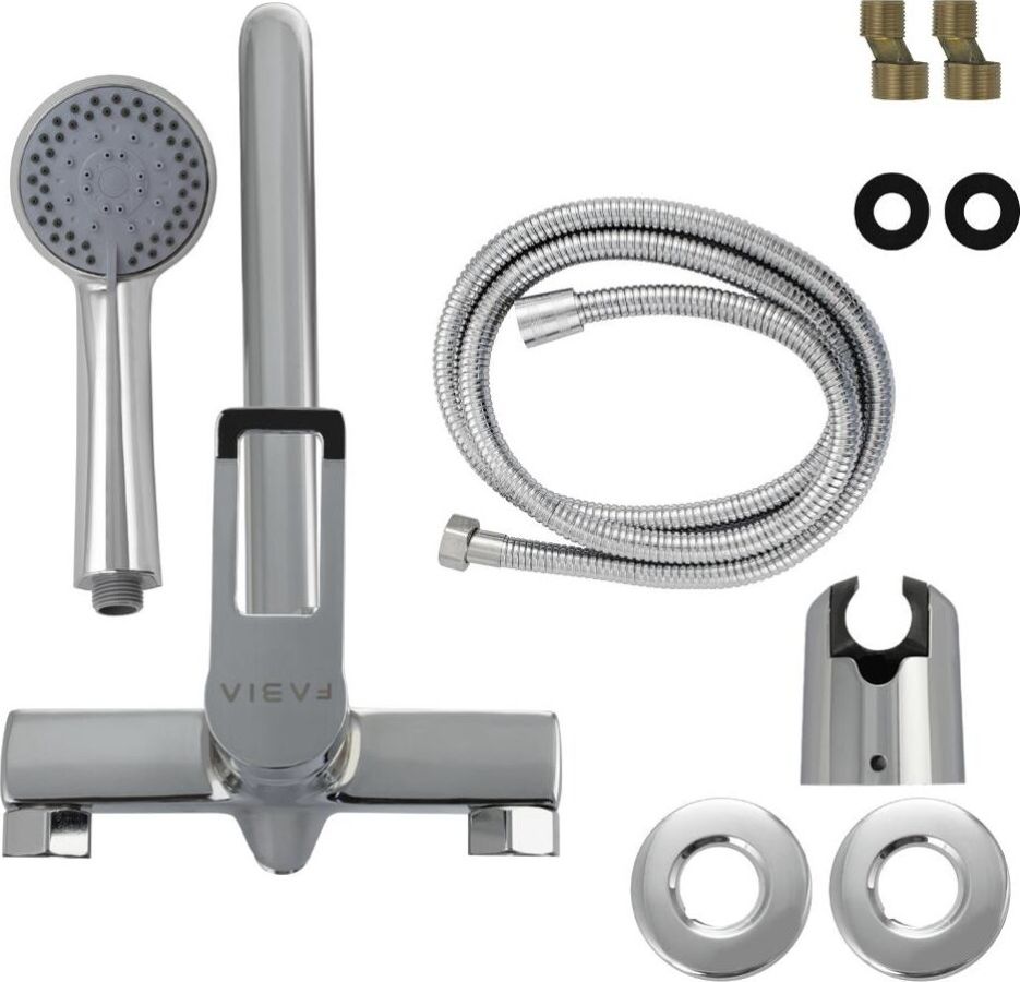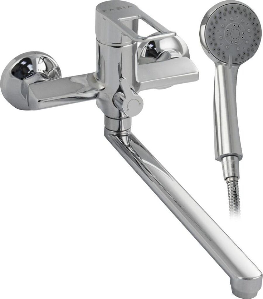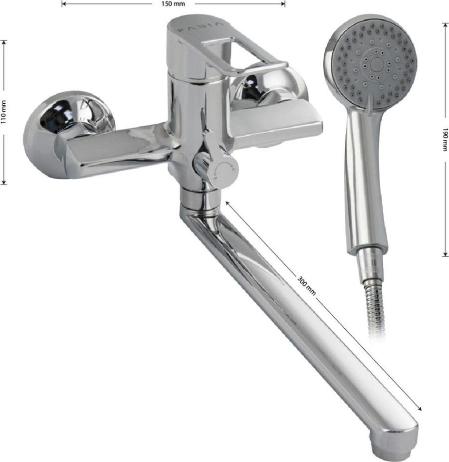 Смеситель хромированный в ванную / душевую комнату с длинным, плоским изливом, тяжёлый, массивный корпус, шаровый, с дивертором м/к на корпусе. Материал изготовления — ЦАМ (цинк-алюминий-медь) + нержавеющая сталь. Картридж d = 35 мм, плоская ручка с декоративным вырезом, аэратор для экономии воды, чашки и эксцентрики из нержавеющей стали. Габаритные размеры: ширина 150 мм, высота корпуса мм, длина излива 300 мм, душевая лейка 3 режима мм, шланг 150 см. Вес - кг, объём - 0, м3. В комплекте паспорт, корпус с изливом, дивертор, душевая лейка, шланг, кронштейн, комплект крепежа и прокладок.