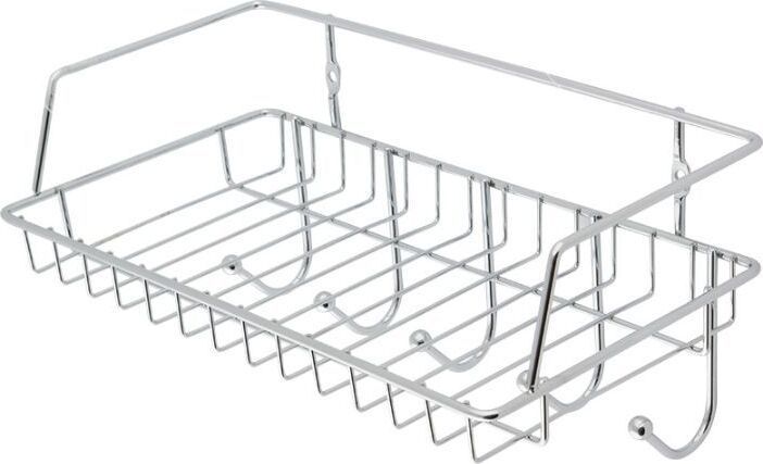 Корзинка для ванной комнаты с 5 крючками Размеры: 29*15*14 см Материал: хромированный металл Крепление: шурупы (в комплекте)