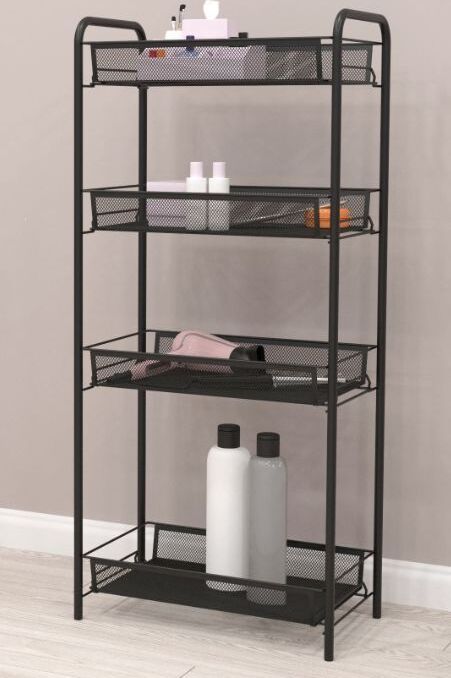 Назначение Для хранения. Материал Стальная труба, просечно-вытяжной лист, проволока, пластик, полимерное покрытие. Габариты (Д*Ш*В) 44х25х96 см. Максимальная нагрузка, кг до 10 кг на корзину.