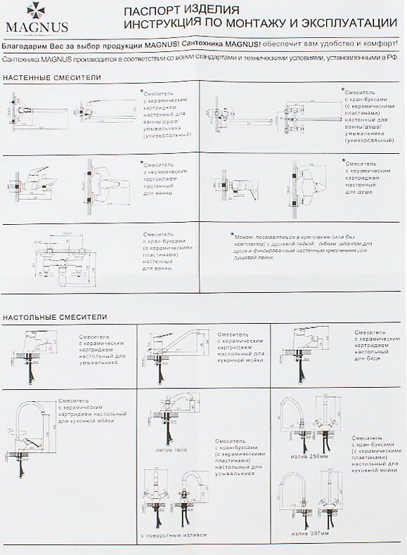 Комплектация: паспорт, корпус с изливом, дивертор, душевая лейка, шланг, комплект крепежа и прокладок, кронштейн
