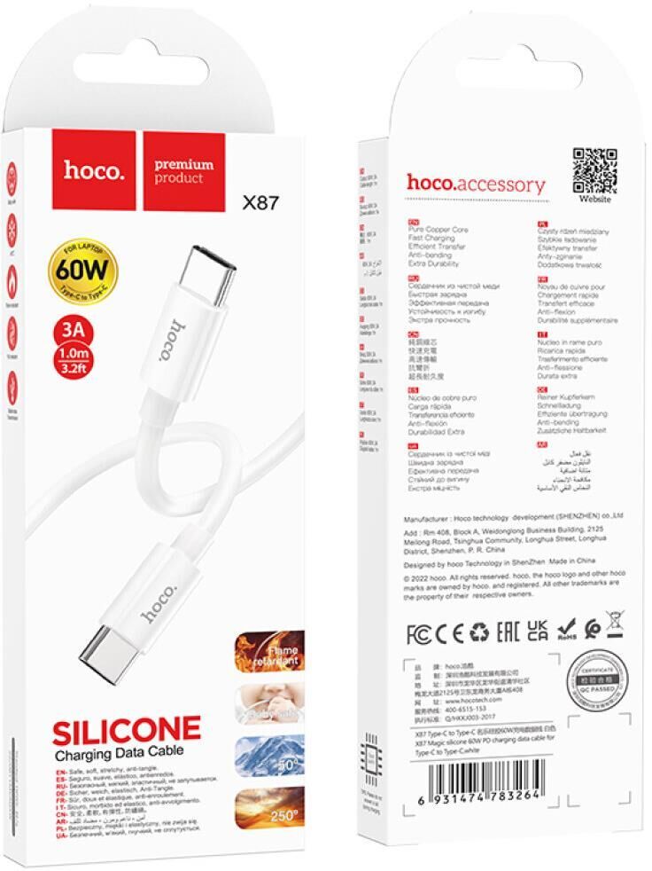 Дата-кабель Borofone изготовлен из увеличенного количества толстого силиконового материала, который более эластичен и мягок и идеально лежит в руке. Поддержка тока 3А с длиной кабеля 1м