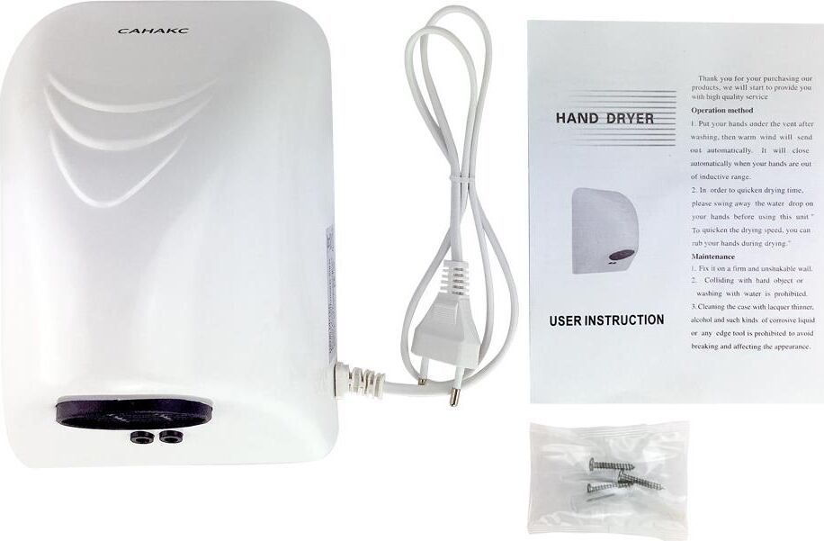 Электрическая сушилка для рук, белая, уменьшенная, незаменима в местах с большой проходимостью людей (бизнес-центры, торговые центры, гостиницы, кинотеатры, рестораны). Корпус сушилки изготовлен из прочного пластика АБС белого цвета, который выдерживает различное механическое воздействие. Прибор отличается небольшой мощностью, что позволит использовать оборудование в различных помещениях с ограниченным электропотреблением или старой проводкой. Для удобства эксплуатации в сушилке для рук предусмотрен инфракрасный датчик движения, который включает прибор без прикосновения к нему, при поднесении рук. Сушилка оснащена надёжным и долговечным двигателем. Прибор облачён в ударопрочный корпус. Параметры - 600 W, автоматическая, АС 220-230В 50/60Гц, сенсор включения 50-200 мм, скорость потока > 8 м/c, температура воздуха >50°C, влагозащищенность IPX1. В комплекте сушилка, паспорт, крепёж Габаритные размеры: высота 214 мм, ширина 141 мм, глубина 146 мм. Вес - 0,700 кг, объем - 0,00558 м3.