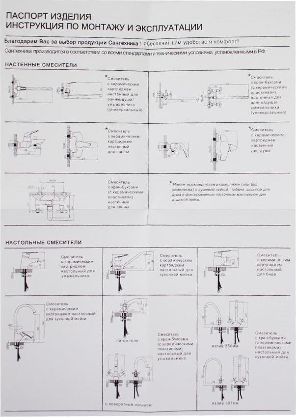 Комплектация: корпус с изливом, шланг., лейка, прокладки, крепёж, паспорт