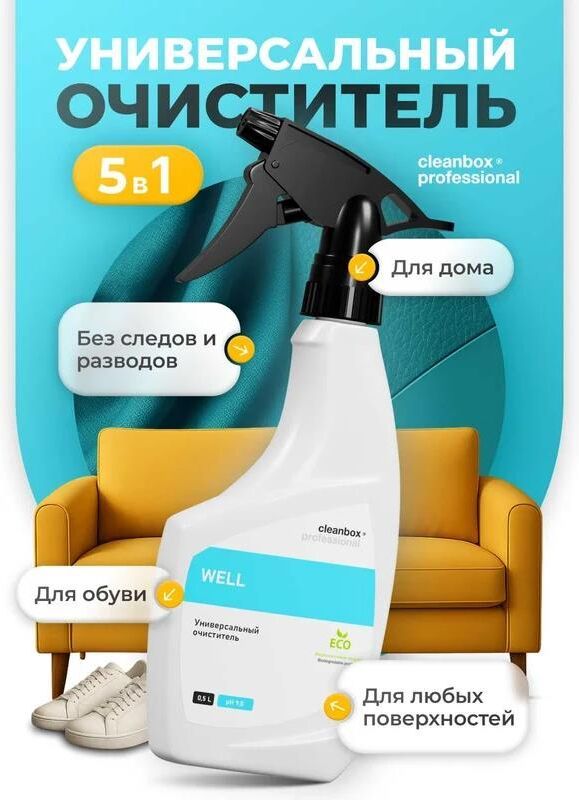 Универсальный очиститель 5в1: Эффективно удаляет загрязнения. Справляется с застарелыми пятнами. Бережно ухаживает за поверхностью.Не оставляет следов и разводов. Обладает приятным ароматом. Подходит для чистки любых видов ткани, пластика, искуственной и и натуральной кожи. Фасовка 0,5 кг - готовый к применению раствор. Концентрация 1 л и 5 л: Ручной способ: 1:5-1:8 (100-160гр/л). Автоматический способ: 1:6-1:9 (100-140гр/л). Концентрация раствора зависит от характера загрязнения. ph 8,0