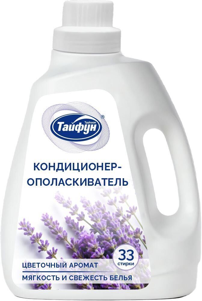 ТАЙФУН Кондиционер для белья, 1 л (Лаванда) Кондиционер для белья предназначен для умягчения тканей в процессе стирки, восстановления волокон и устранения статического электричества. Для всех видов тканей. Нежный аромат лаванды. Придает тканям мягкость. Снимает статическое электричество. Освежает цвета. Подходит для септиков.