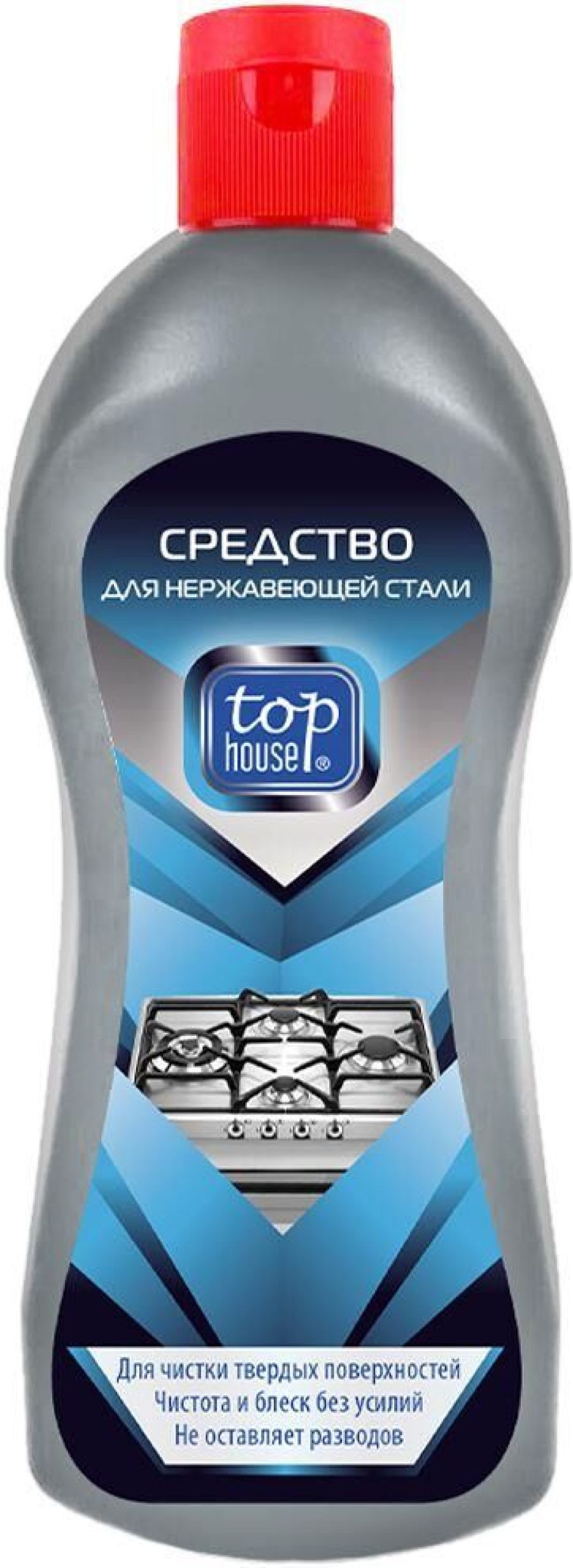 TOP HOUSE Средство для нержавеющей стали, 320 мл. Незаменимо для чистки поверхностей плит, духовок, СВЧ-печей, утюгов, чайников, соковыжималок и других бытовых приборов из металла и нержавеющей стали. Легко удаляет жир, грязь, пятна от воды, нагар с утюгов. Мягко полирует и восстанавливает блеск.
