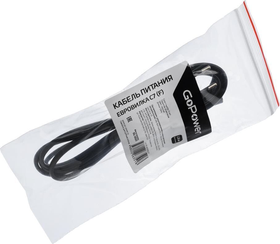 Силовой кабель, евровилка-C7 (2-pin), сечение 0,75мм, длина кабеля 1,8 метра, ПВХ, цвет черный