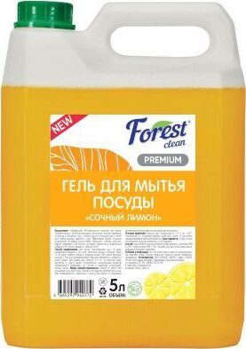 FOREST CLEAN Гель для мытья посуды "Сочный лимон" PREMIUM 5 л Гелеобразное, Ph-нейтральное средство для мытья кухонной посуды. Можно использовать для мытья столовых приборов, устройств и аппаратов, тары, столов и другого оборудования, а также для мойки овощей, фруктов и рук. Эффективно против пищевых загрязнений на любых влагостойких покрытиях: стёклах, хрустале, кафеле, керамике, пластмассах, металлах, древесине и окрашенных поверхностях. Легко смывается. Придаёт блеск. Способ применения: для мытья замачиванием: на 1 л. воды необходимо добавить 1 мл. геля, поместить посуду в раствор. Через 10-30 минут извлечь посуду и промыть водой. Для мытья вручную: нанести 2-3 мл. на смоченную водой губку или поверхность, потереть и смыть водой. Для мойки рук: нанести 2-3 мл. на влажные руки, растереть и смыть водой. Оптимальную концентрацию средства рекомендуется определять по степени и характеру загрязнений, методу мойки.