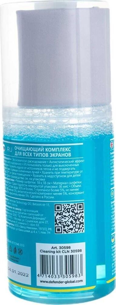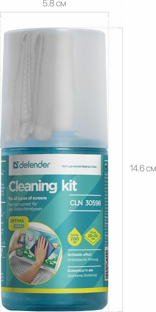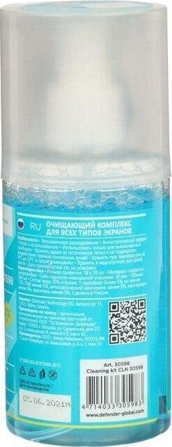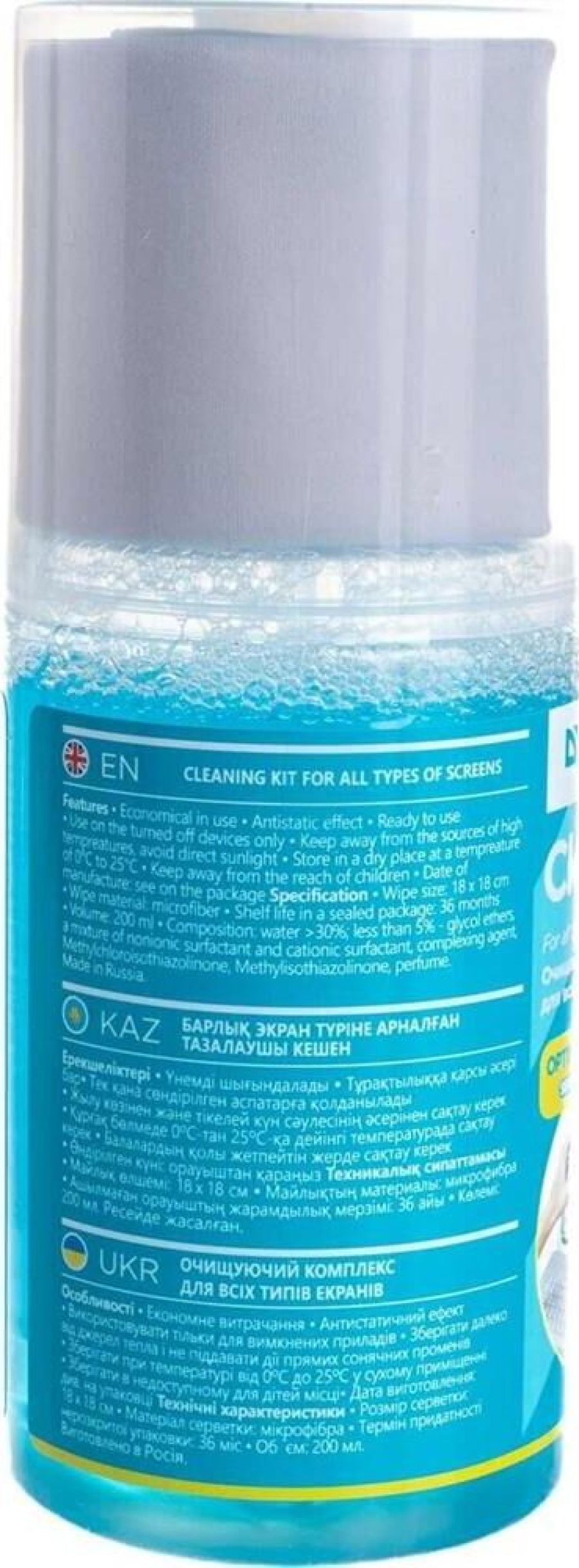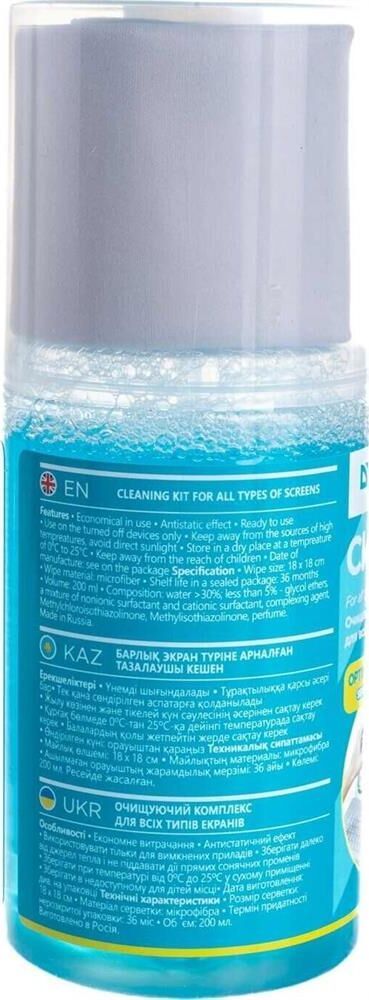 Назначение: Для экранов, Объем: 200 мл, Размер салфетки: 18 х 18 см, Материал салфетки : Микрофибра.