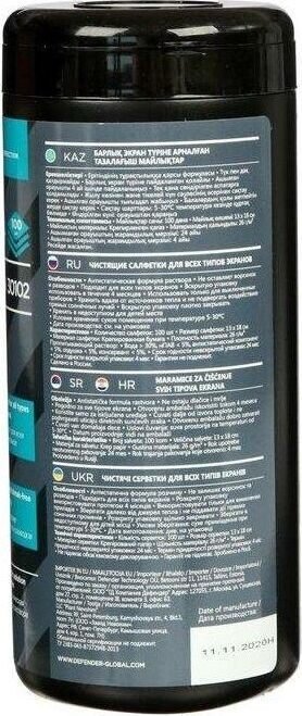 Назначение: Для экранов, Вид упаковки: Туба пластиковая, Кол-во салфеток: 100 шт, Состав: Пропитывающий раствор, Салфетки из крепированной бумаги, Материал салфетки: Крепированная бумага, Размер салфетки: 13 х 18 см, Плотность материала: 26 г/м.