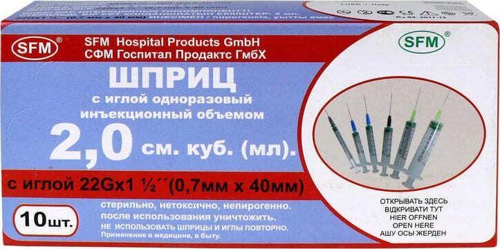 Шприцы трехкомпонентные одноразовые в аптечных упаковках поставляются с иглами. Шприцы применяют для выполнения подкожных, внутримышечных инъекций и других лечебно-диагностических мероприятий. Шприц состоит из трех частей: цилиндр, поршень, манжета на поршне. Трехкомпонентные шприцы объемом 2 мл изготовлены из специального полипропилена и стерильно упакованы. Уплотнитель поршня не содержит латекс.