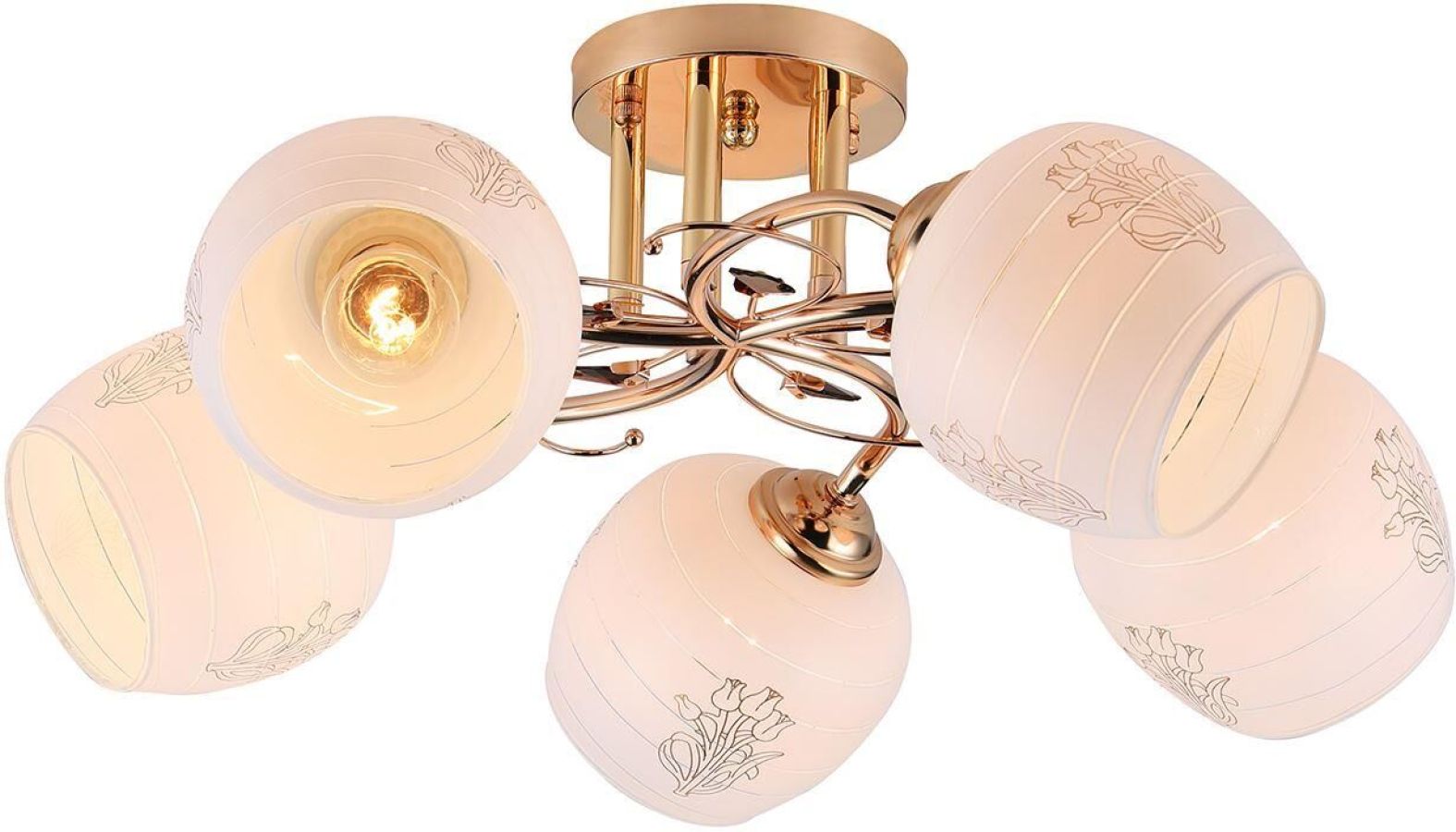 Потолочный светильник 5х40Вт E27, металл/стекло, золото