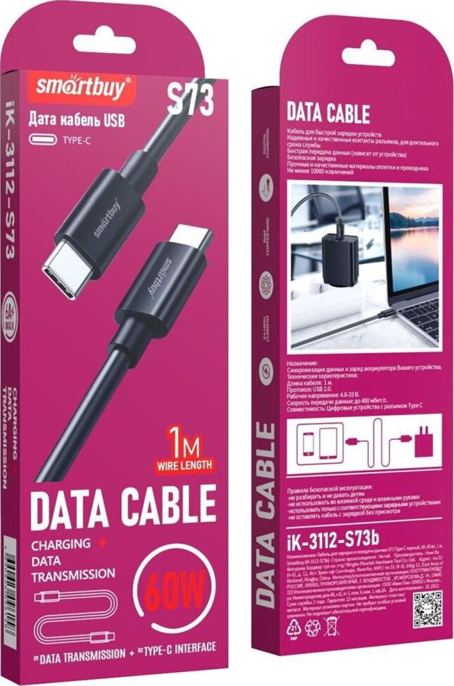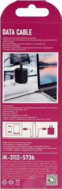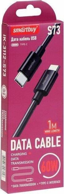 Кабель для зарядки и передачи данных, тип разъема -Type C, максимальный ток - 6А, сорость передачи данных - до 480 мбит/с. , длина кабеля - 1,0 м.